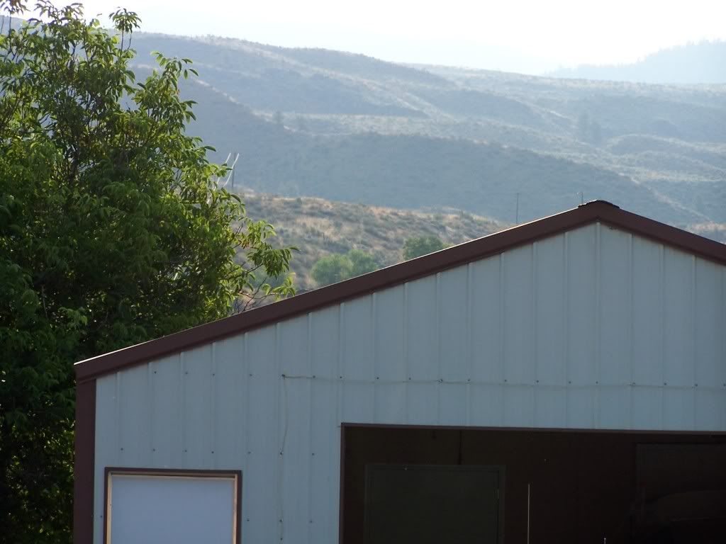 I hope you don't mind that I post about a thunderstorm up here a couple weeks ago. I posted this in the chile pepper grow log but I know a lot of folks don't peruse the Off-Topics on a regular basis. I know it's not in Baja, and I'll delete it if you want, It's some pretty incredible footage taken with a Kodak digital camera, not a video camera. Hope folks enjoy (?) it~ The hum in the background is from the a/c unit we were standing right next to. Watch for the double lightening strike at 1:06, and then sheets of rain blowing sideways. http://www.youtube.com/watch?v=2sLt5fdJuI4 Here's a couple screen shots of the still frame of the strikes- ![]() ![]() And here's the view over the garage the next morning, so you can see how close the hills are behind the garage. The lightening struck somewhere between our house and the hill. Also notice you can't even see the hill because of the rain. ![]() Even with the wild weather, the peppers weathered the storm fine, didn't loose any of them.