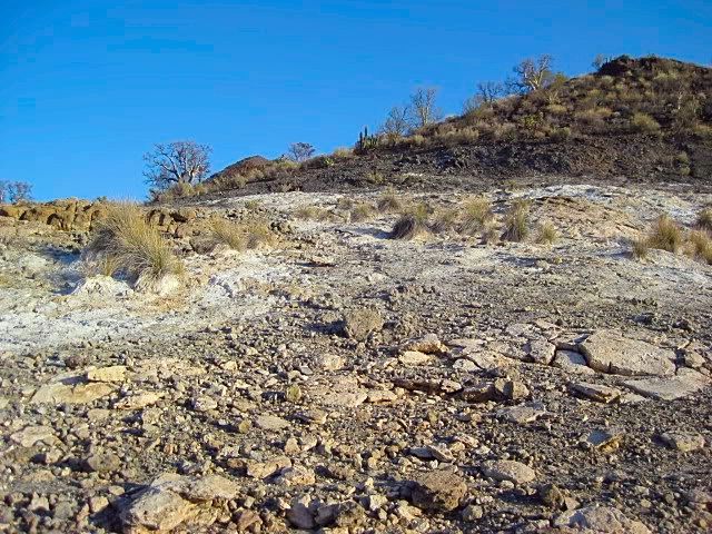After resting up from the big hike, later Saturday afternoon we took a drive to see the La Olvidada (The Forgotten) Barite Mine. Along the way and on the return we take a look at the White Slope of springs just east of Arroyo El Volcan.